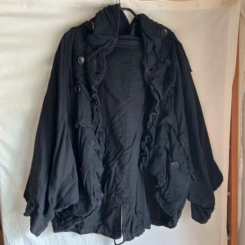 파드칼레 후드 부착 판초 원단은 얇습니다. - 소재: 폴리에스테르 70%, 코튼 30% - 색상: 블랙 - 디자인: 프릴, 단추식, 후드 부착 - 스타일: 오버 사이즈 방문해 주셔서 감사합니다.