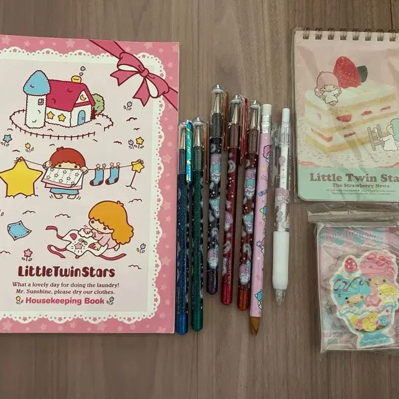 리틀트윈스타의 가계부와 펜, 지우개 세트, 귀여운 문구 세트입니다. 지우개와 메모, 수첩은 미사용입니다. 펜은 사용감이 있습니다. - 브랜드: Little Twin Stars - 상품명: Housekeeping Book - 부속품: 펜 세트 - 지우개 - 노트: 메모장 방문해 주셔서 감사합니다.