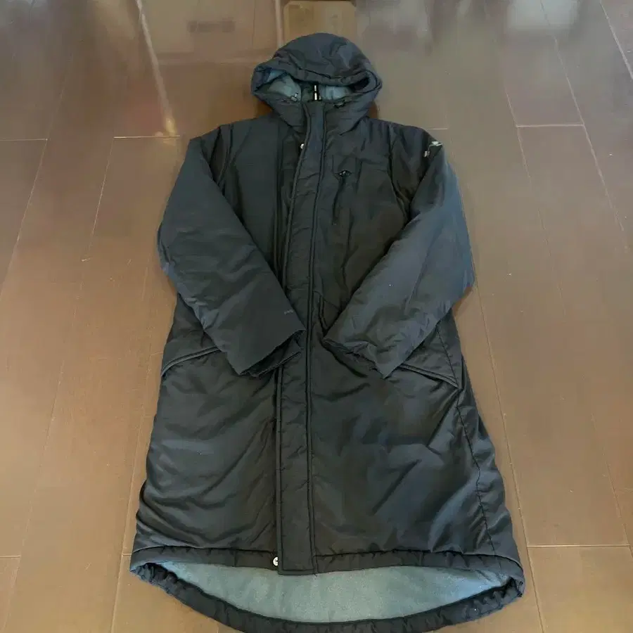 [언더아머] 블랙 후드 부착 롱 다운 자켓