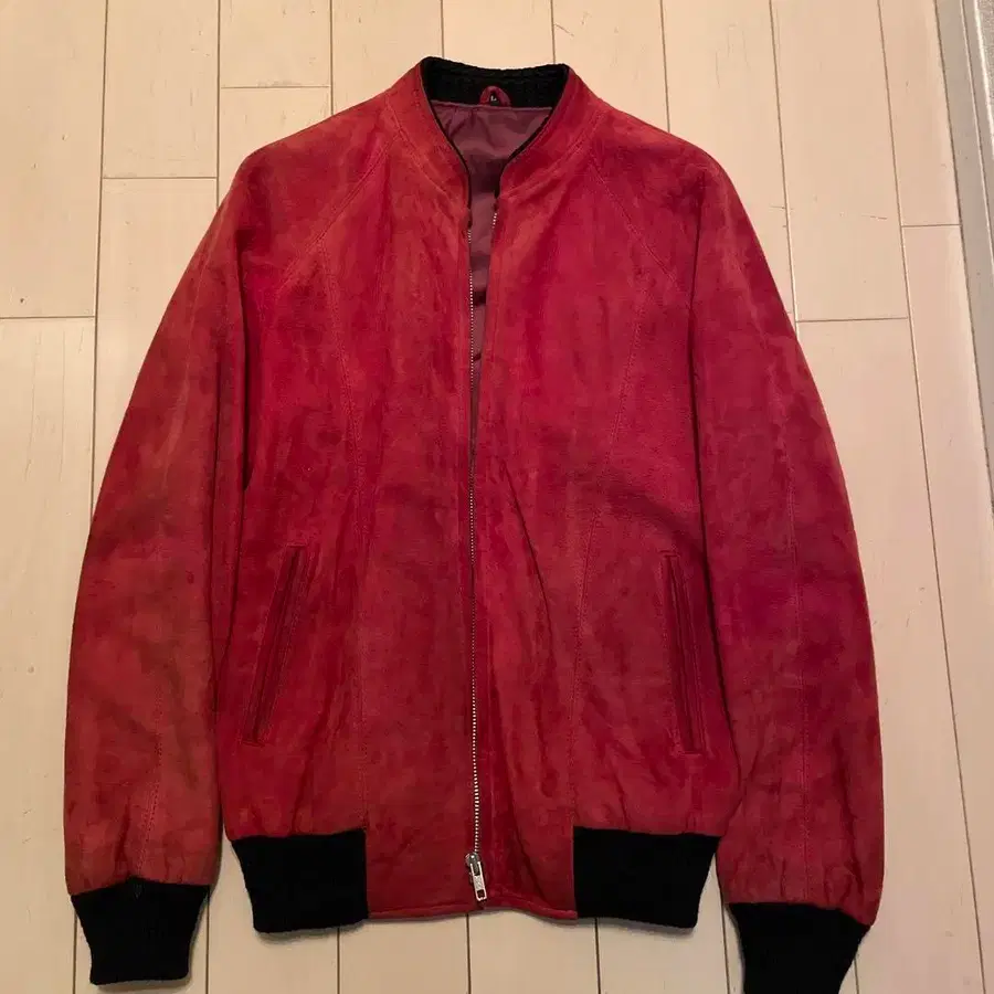빨간색 스웨이드 봄버 자켓