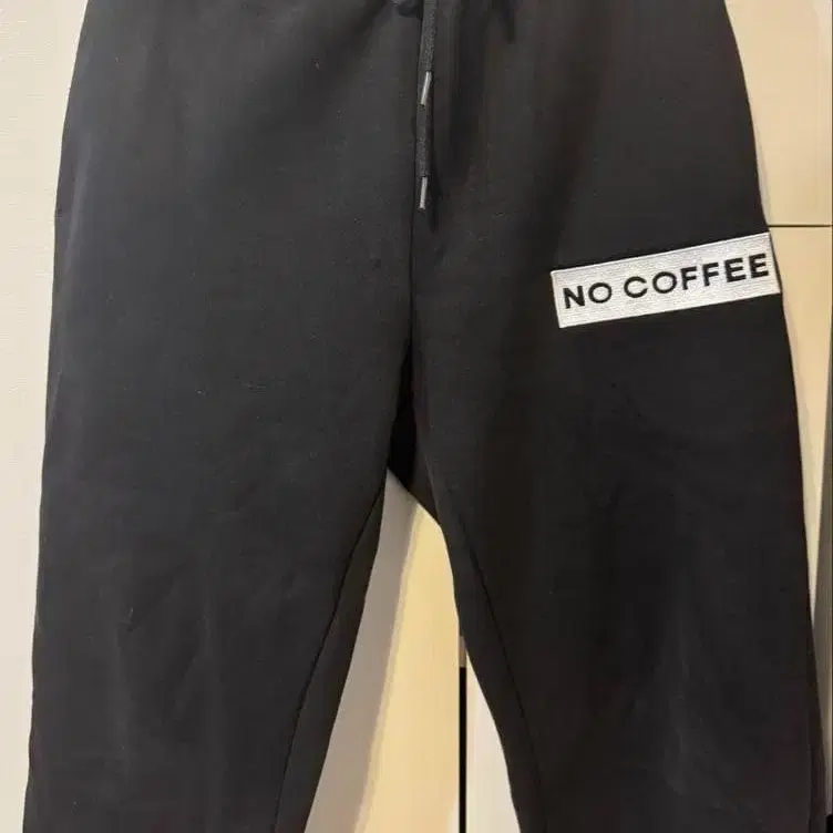 자동 번역되었어요. 원문보기NO COFFEE 로고가 특징인 블랙 스웨트 팬츠입니다.