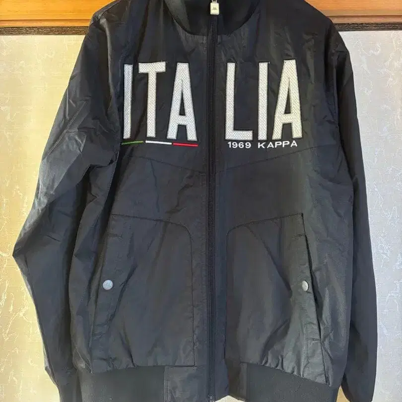 Kappa의 ITA LIA 자켓, 1969년 디자인, 블랙 컬러, 앞면에 2개의 포켓 부착. - 브랜드: Kappa - 모델명: ITA LIA - 연도: 1969 - 색상: 블랙 - 디자인: 큰 글자 로고 - 포켓: 앞면에 2개의 포켓 방문해 주셔서 감사합니다.