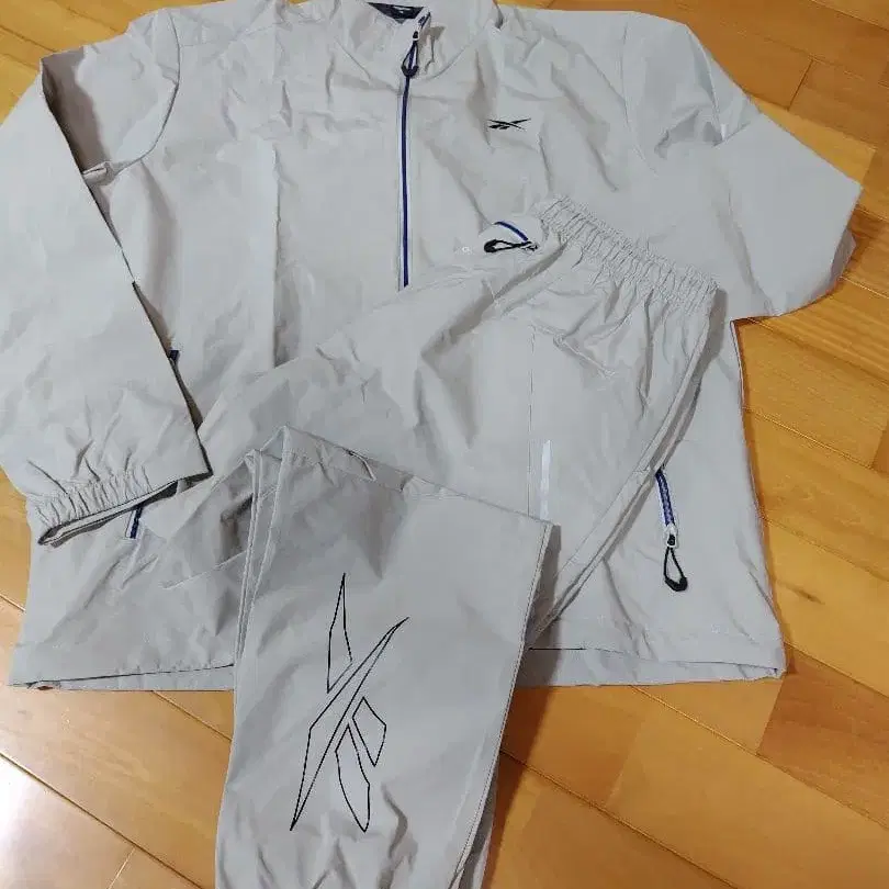 경량 나일론 소재의 자켓과 팬츠 세트입니다. 한 번 사용했지만 다른 저리가 메인이 되어 판매합니다. 안감은 나일론 가공으로 바람을 전혀 통하지 않습니다. 겨울에 딱 좋습니다. 포켓도 지퍼로 사용하기 쉽고, 리복 로고도 돋보입니다. 상당히 새상품급입니다. - 브랜드: Reebok - 색상: 라이트 그레이 [ 화이트 ] - 스타일: 자켓 팬츠 세트 - 특징: 지퍼 포켓 부착 - 디자인: 로고 있음 방문해 주셔서 감사합니다.