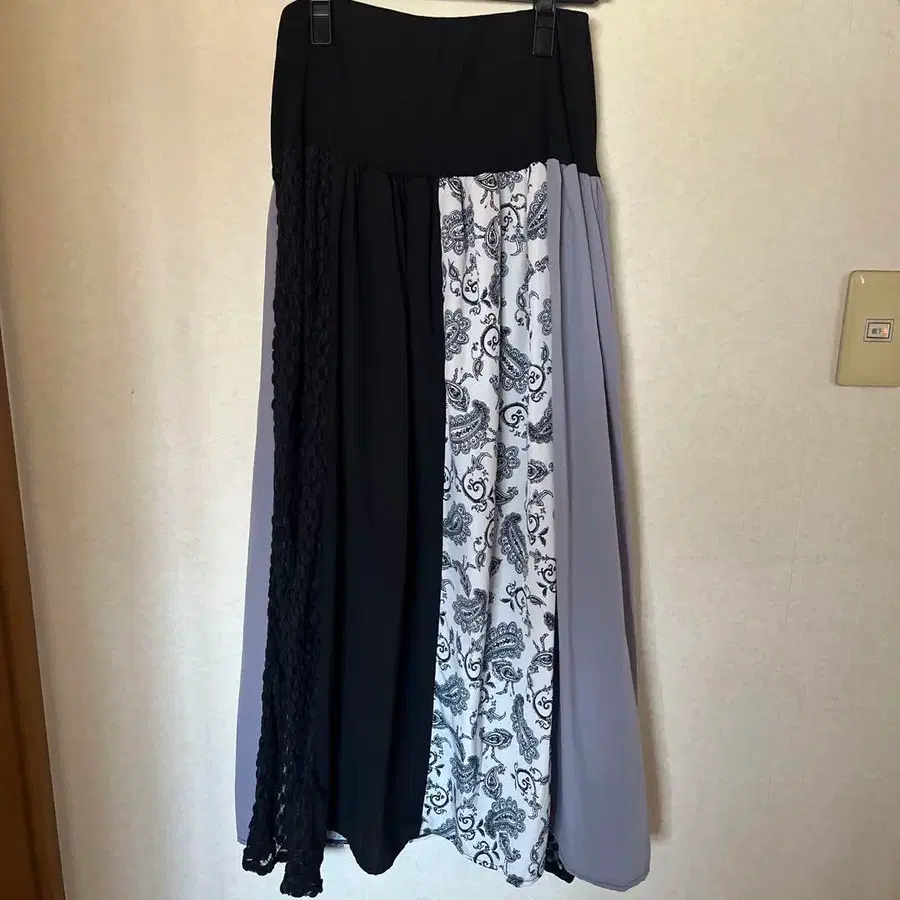 • 패치워크 디자인 무릎 아래 스커트 미사용 새상품