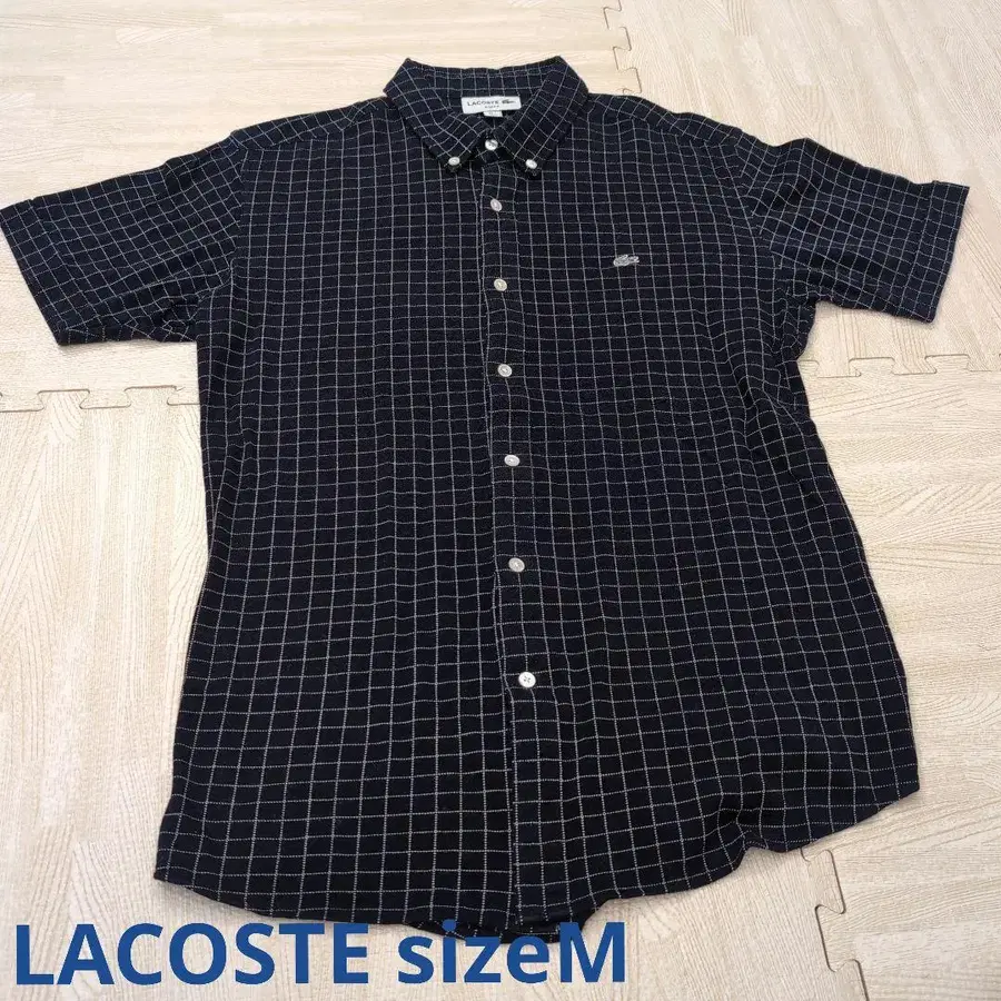 LACOSTE (라코스테) 반팔 체크 셔츠 자수 로고