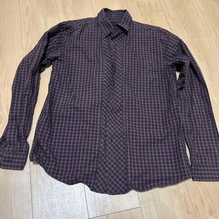 • 긴팔 셔츠 보라색 계열 체크 L 사이즈