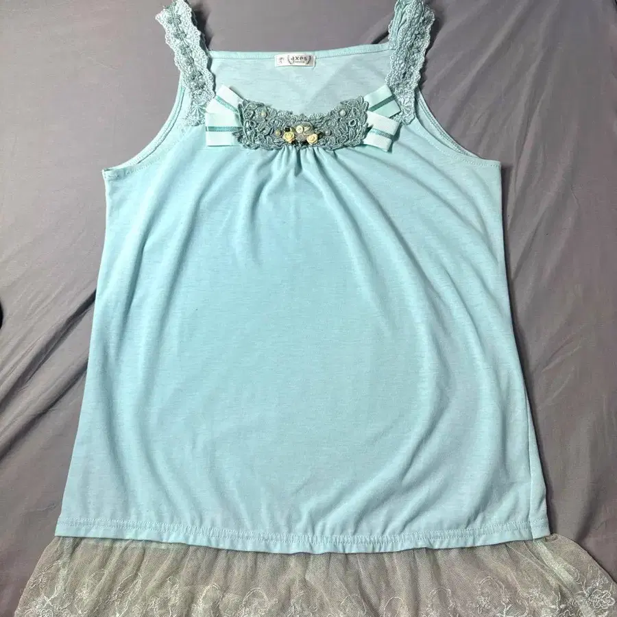 스카이블루 색상의 귀여운 탱크탑입니다. 사용감이 있지만 아직 착용 가능하다고 생각합니다. 사진으로는 보기 어렵지만, 약간의 얼룩이 있습니다. 가격 인하 및 묶음 판매 대환영입니다(*^^*) 잘 부탁드립니다.