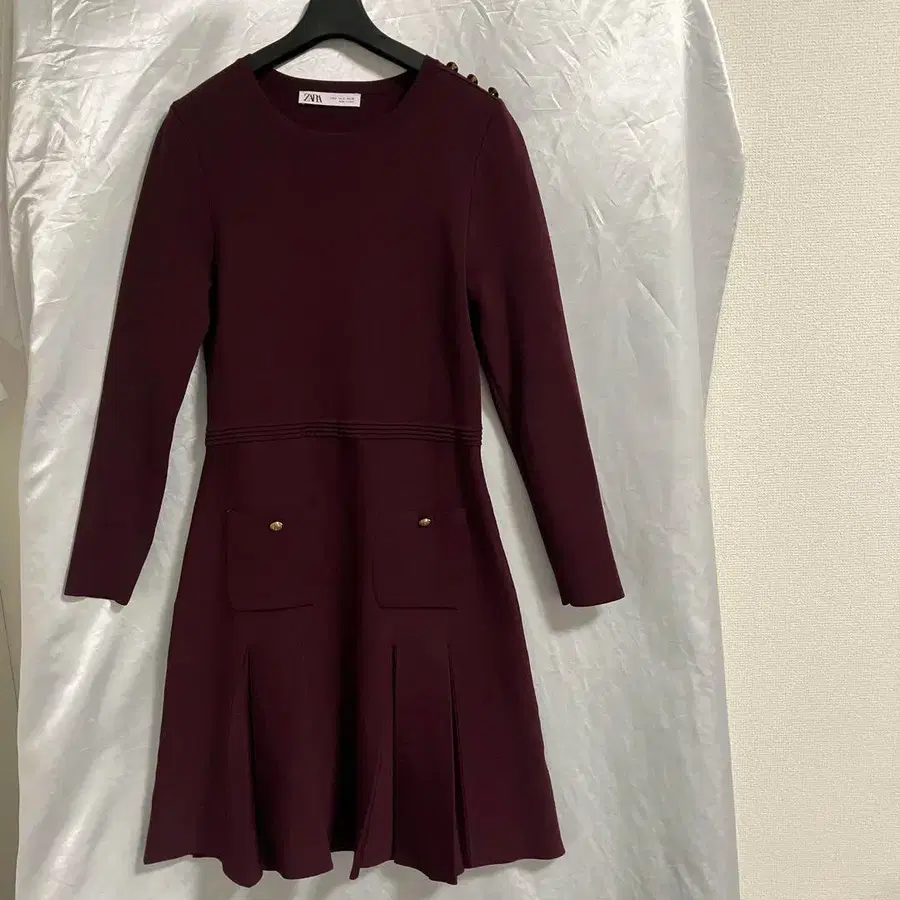 [ ZARA ] 숏 플리츠 니트 원피스 버건디