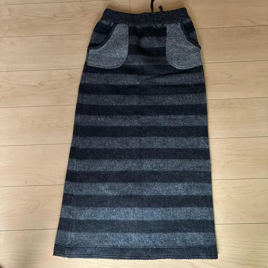 그레이와 블랙 스트라이프 디자인, 사이드 포켓이 있는 타이트 스커트.