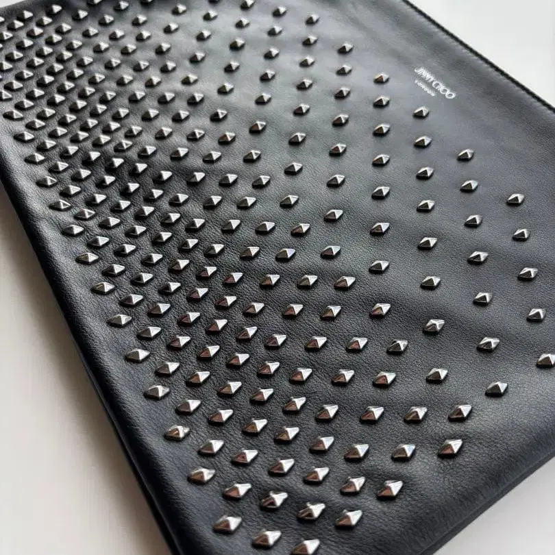 [ 상품 설명 ] JIMMY CHOO 지미추 클러치백 가죽 블랙 다이아몬드 스터드 지미추를 상징하는 존재감 넘치는 다이아몬드 스터드 가죽 클러치백입니다. 매우 부드러운 촉감의 가죽으로 A4 사이즈 서류 등이 들어가는 크기입니다. ○ 사이즈(cm) 약 세로:21.5 가로:31 ○ 소재 겉감/가죽 안감/코튼(면) ○ 색상: 블랙 ○ 상태: 특별히 눈에 띄는 데미지 없이, 사용감도 거의 느껴지지 않는 매우 깨끗한 상태입니다. 스터드 손상도 없습니다. 안쪽 포켓에 작은 얼룩이 있어 사진에 첨부하였으니 확인 부탁드립니다. ○ 부속품: 수납 가방 --------- 궁금한 점이 있으신 분은 댓글로 질문 부탁드립니다. 판매 상품은 자택 보관 상품입니다. 중고품이라는 점을 이해하신 후 구매 부탁드립니다.