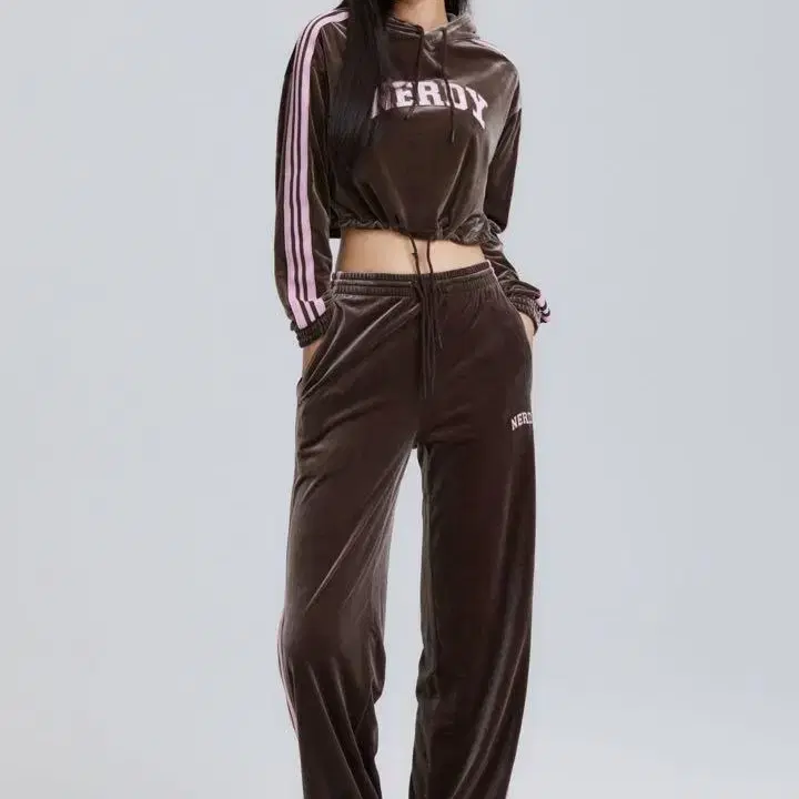 NERDY. 벨벳 크롭 후디와 스웨트 팬츠