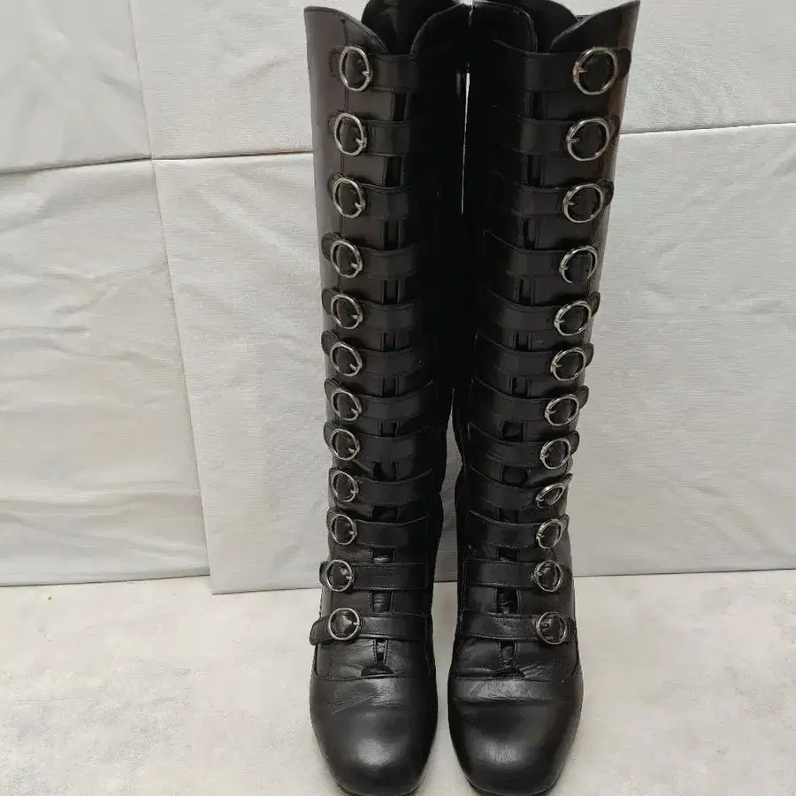 • 가죽 롱 부츠 블랙 버클 포함 S 사이즈