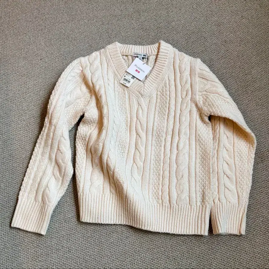 새상품 유니클로 UNIQLO JWA 케이블 V넥 스웨터 M 화이트