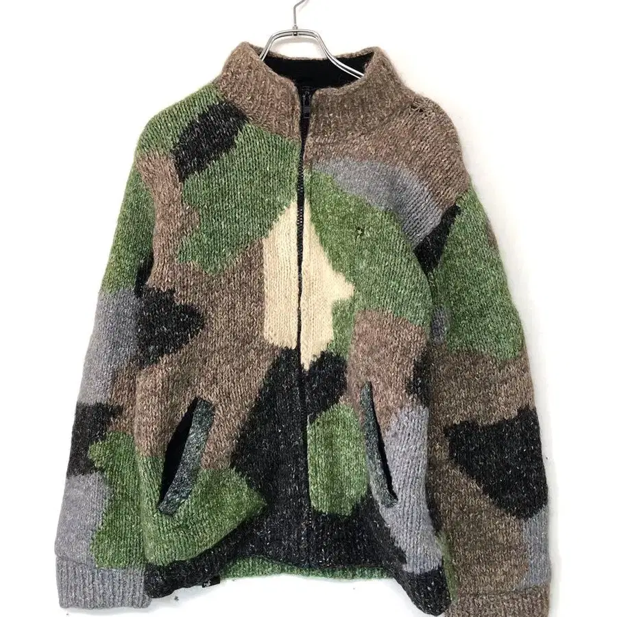 CORNERIUS amaca 구제 의류 카모 패턴 집업 니트 자켓