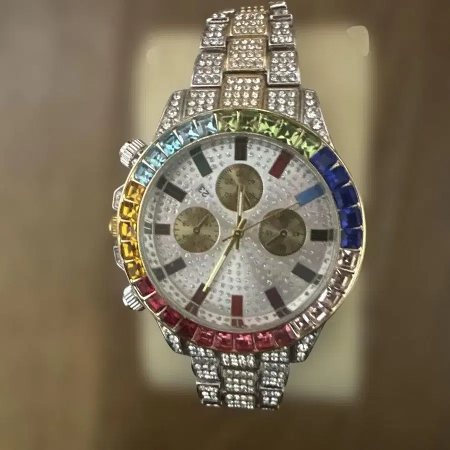 컬러풀 스톤 부착 크로노그래프 손목시계