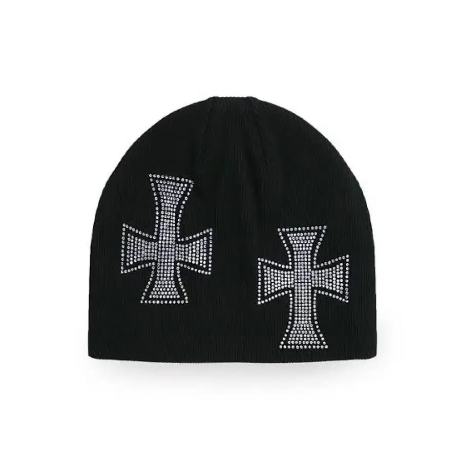 - 색상: 블랙 - 디자인: 크로스 스톤 장식 - 택: UNKNOWN 방문해 주셔서 감사합니다. 몇 년 전에 구매했지만 거의 착용하지 않았습니다. 시착 정도입니다. 큐빅도 떨어지지 않았습니다! #unknown#unknownlondon#니트 모자#블랙#크로스#y2k