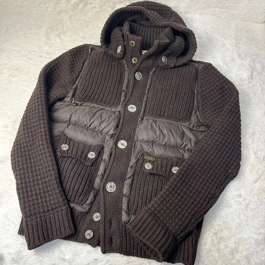 컨디션 최상 Bark 바크 니트 x 다운 블루종 브라운