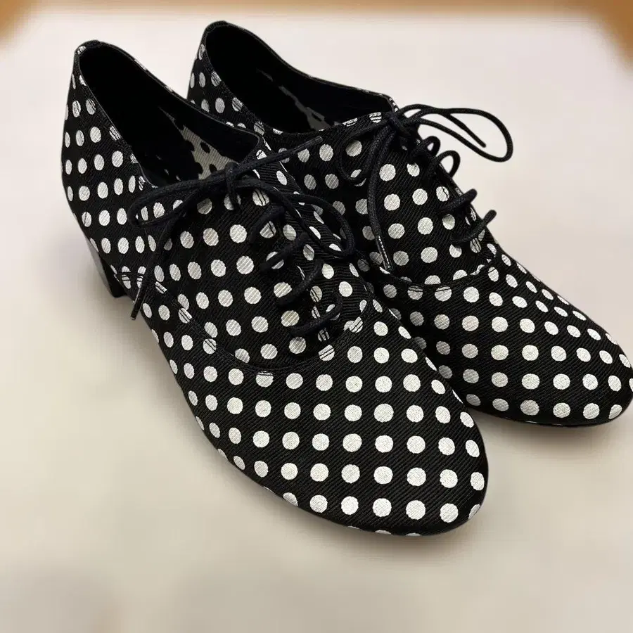 레페토 Repetto Zizi 레이스업 슈즈 청키힐 도트 캔버스 37 23.3cm 블랙 /KH 여성용 미사용 새상품 자택에서 보관했습니다. 정가 48,000엔 힐 높이: 5cm 최대 폭: 8cm