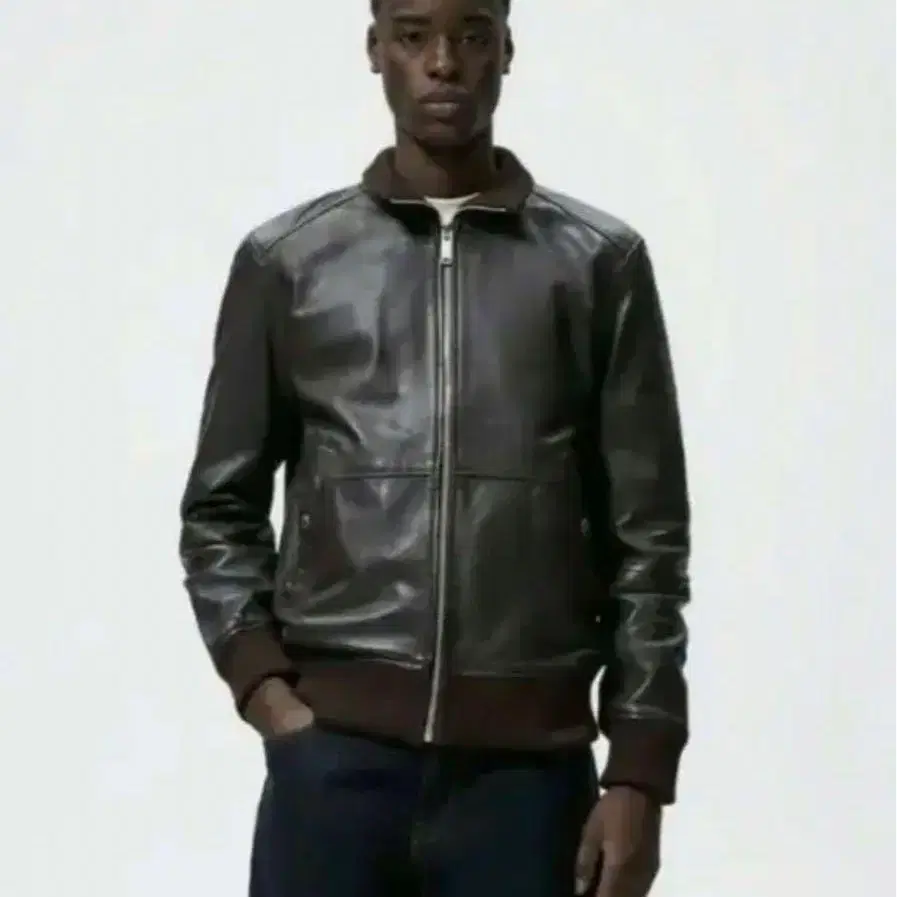 자동 번역되었어요. 원문보기ZARA 다크 브라운 레더 집업 자켓, 캐주얼 스타일에 최적.