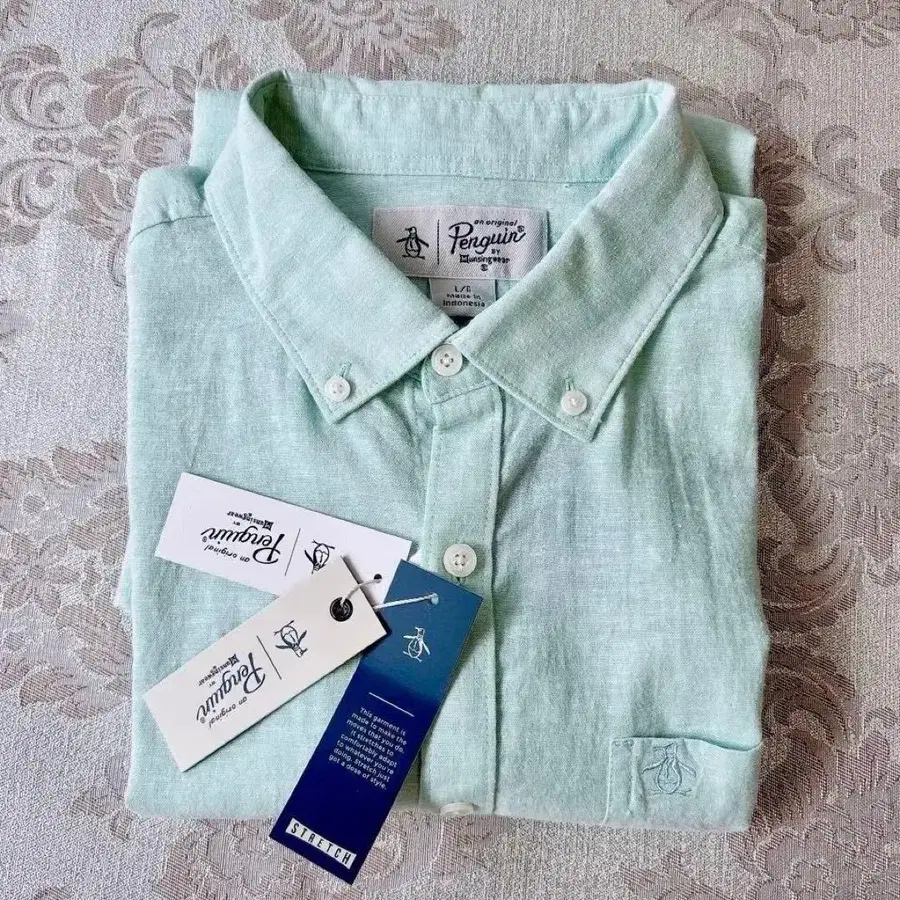 산뜻한 민트 그린 색상의 린넨 혼방 버튼다운 반팔 셔츠. 펭귄이 트레이드마크인 ♪ 골프 캐주얼웨어로 유명한 브랜드입니다. 애프터 골프 의류로, 타운 유스에도 좋습니다. 연령대에 상관없이 입으실 수 있을 것 같습니다(^^) L 사이즈 기장 약 74cm 가슴 너비 약 60cm 어깨 너비 약 48cm 린넨 53%, 코튼 45% 외 미국에서 구매, 85달러였습니다. 미사용으로 보관 냄새 없이 깨끗한 상태입니다. 가족의 체형 변화로 입지 못하게 되어, 멋진 옷이라 아쉽지만 판매합니다. 같은 사이즈의 다른 디자인도 판매 예정입니다 ♪ 먼싱웨어는 1886년 미국 미니애폴리스에서 창업했습니다. 1955년 세계 최초의 니트 골프 셔츠를 개발한 먼싱웨어의 골프 캐주얼 라인입니다. '리틀 피트'라는 애칭으로 알려진 펭귄을 브랜드 아이콘으로, 과거의 아카이브 디자인과 패턴을 현대적으로 업데이트시킨, 차세대 골프 캐주얼 스타일을 제안합니다. 꼼꼼한 검품을 하고 있지만 자택 보관품이므로 미세한 점에 대해서는 양해 부탁드립니다. 사소한 점이 신경 쓰이시는 분은 구매를 삼가 주시기 바랍니다 ( ❀ ᴗ͈ˬᴗ͈)⁾⁾ Munsingwear 먼싱웨어 골프웨어