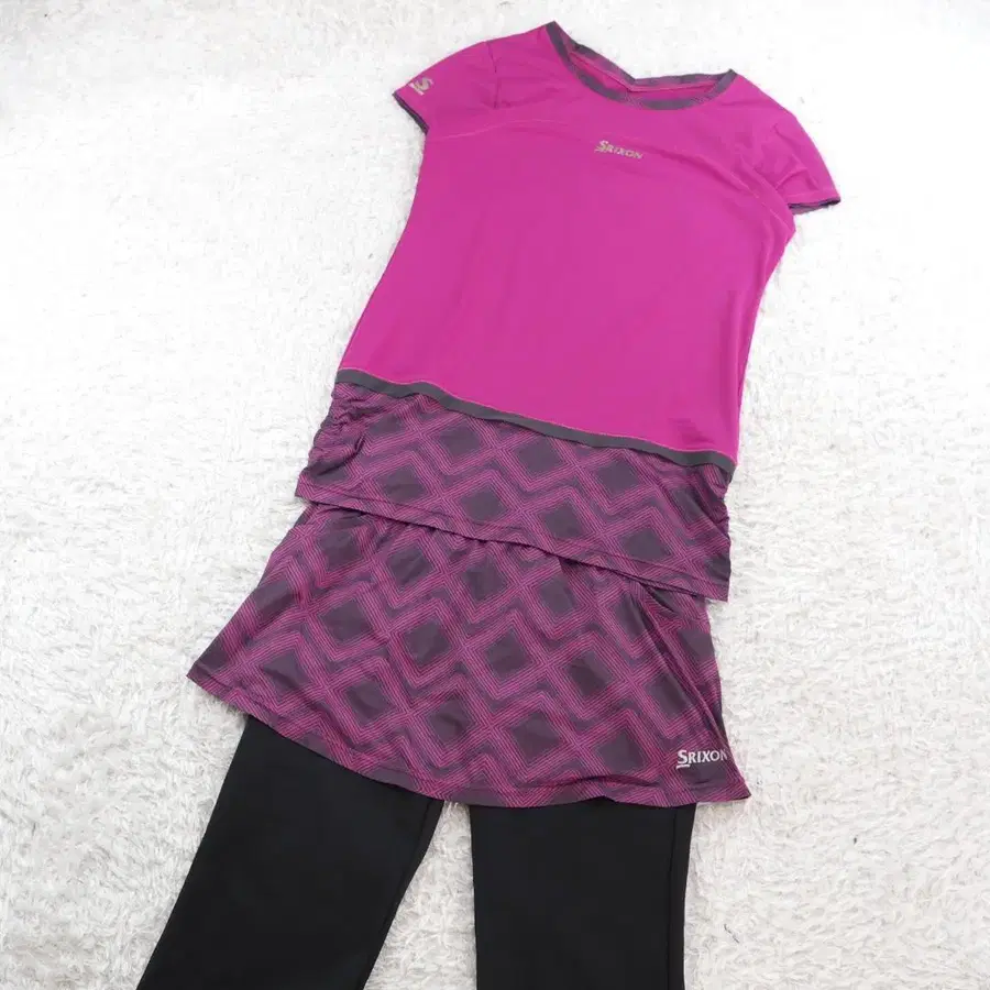 스커트 허리밴딩, 끈 조절 가능, TOPS 앞뒤 약간 늘어난 자국 있음.