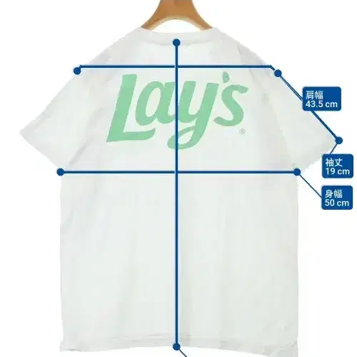 [ 실측치수(cm) ] 가슴 너비: 50cm, 어깨 너비: 43.5cm, 소매 길이: 19cm, 기장: 64.5cm