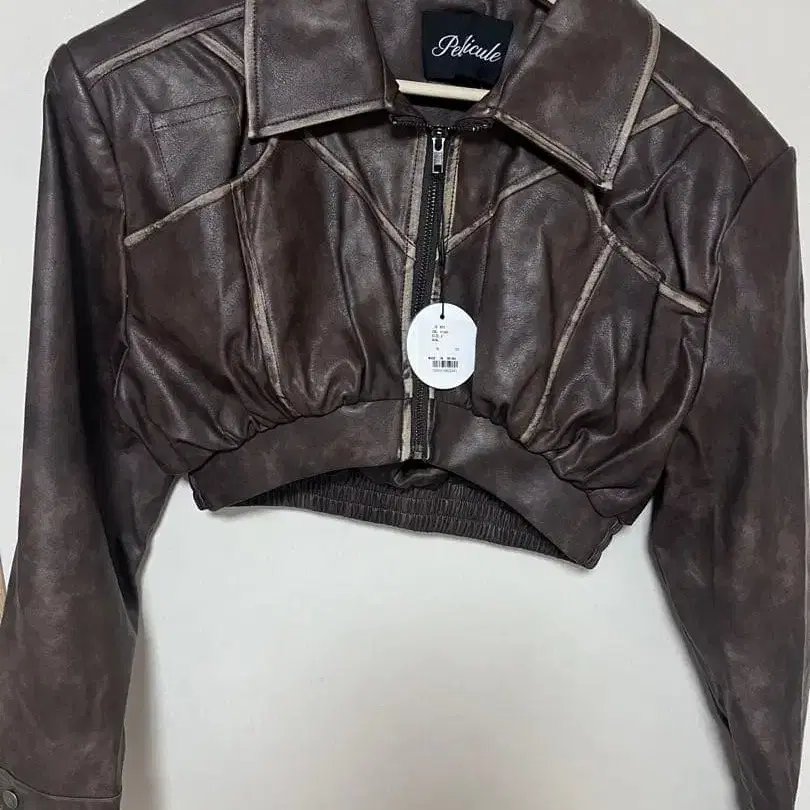 PELLICULE 브라운 크롭 가죽 자켓