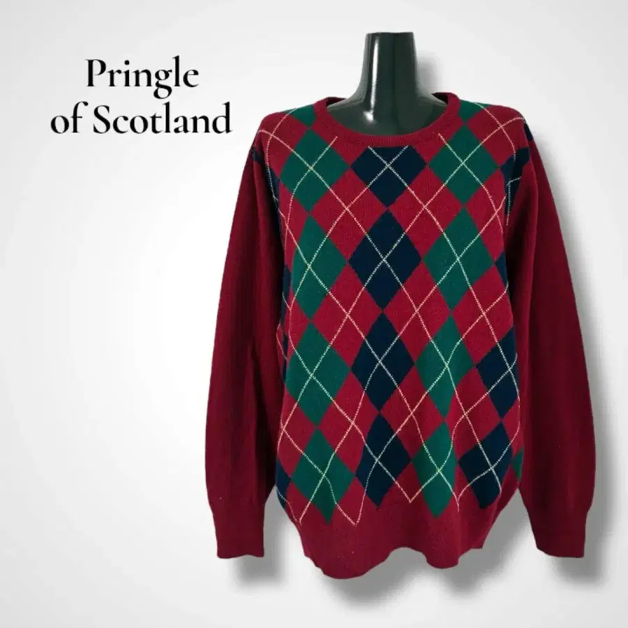 프링글 오브 스코틀랜드 아가일 스웨터 레드 퓨어 울