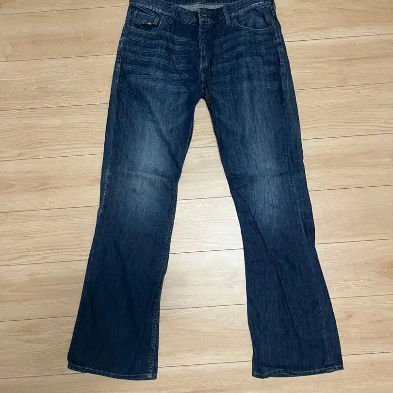 GUESS의 다크 블루 부츠컷 데님. 허리 42 허벅지 60 밑단 폭 48 총길이 110