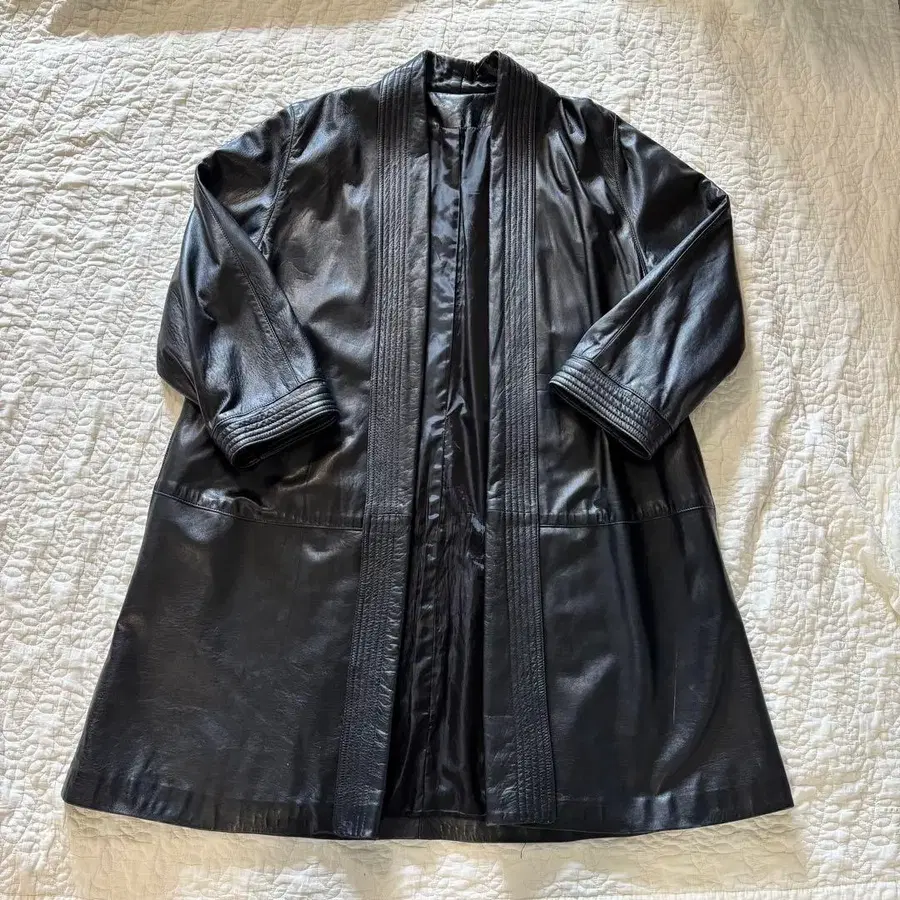 블랙 가죽 롱 코트
