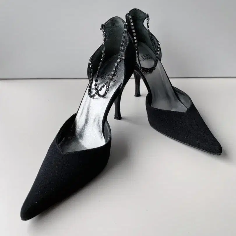 스튜어트 와이츠먼/비쥬 장식 블랙 스틸레토 하이힐