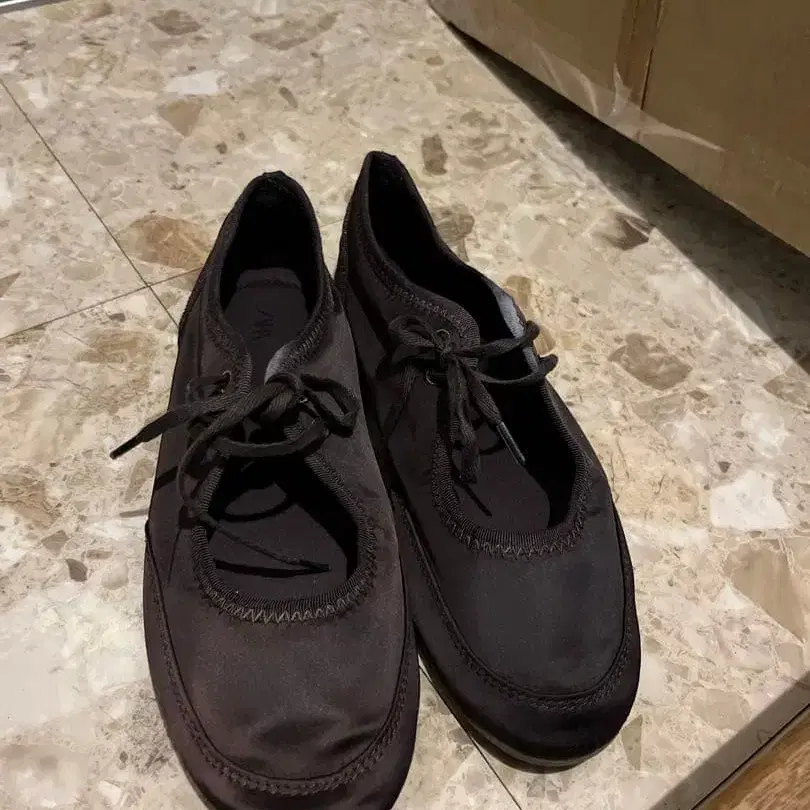 • [ 미사용 새상품 ] ZARA 자라 스트랩 퍼 발레리나 슈즈 플랫 신발
