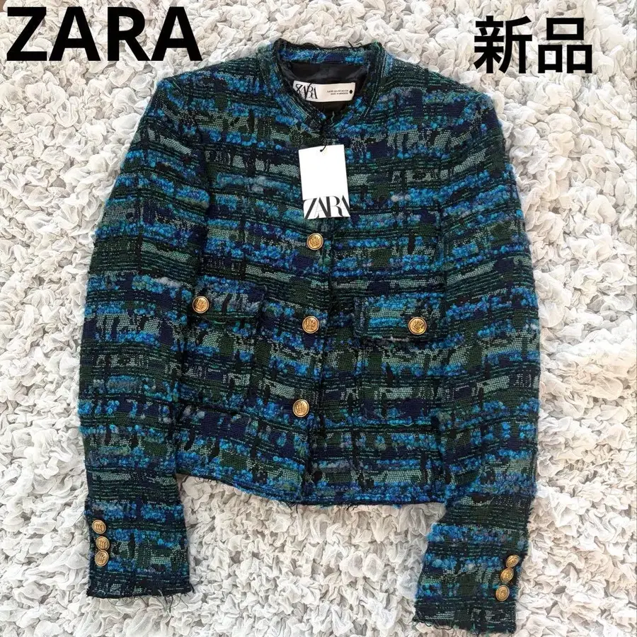 [ 새상품 ] ZARA 트위드 골드 버튼 자켓 블루 계열 XS(M 상당)