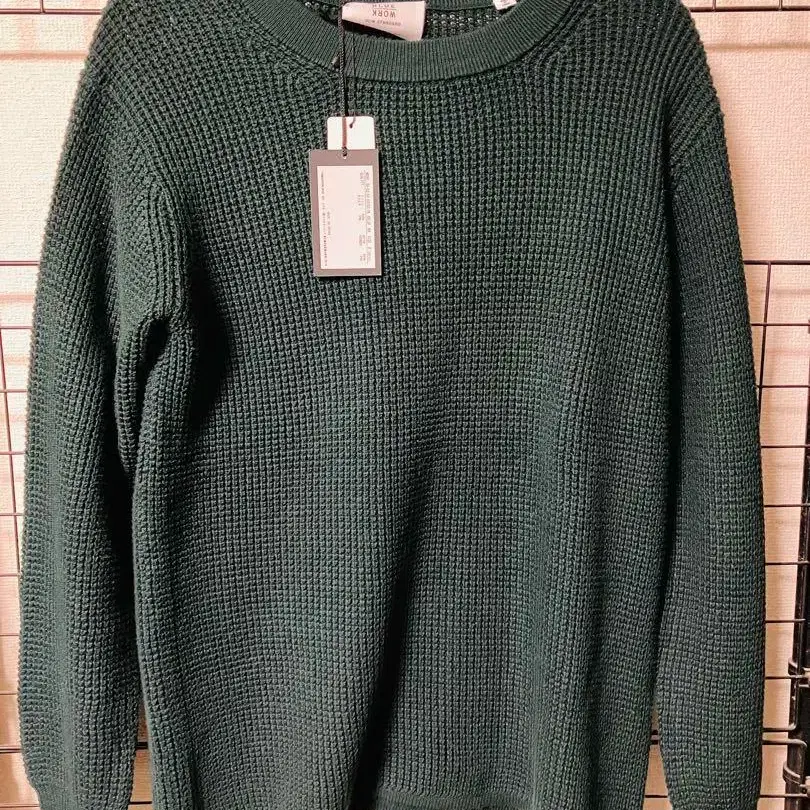 미사용 새상품 BLUE WORK 니트 스웨터 다크 그린