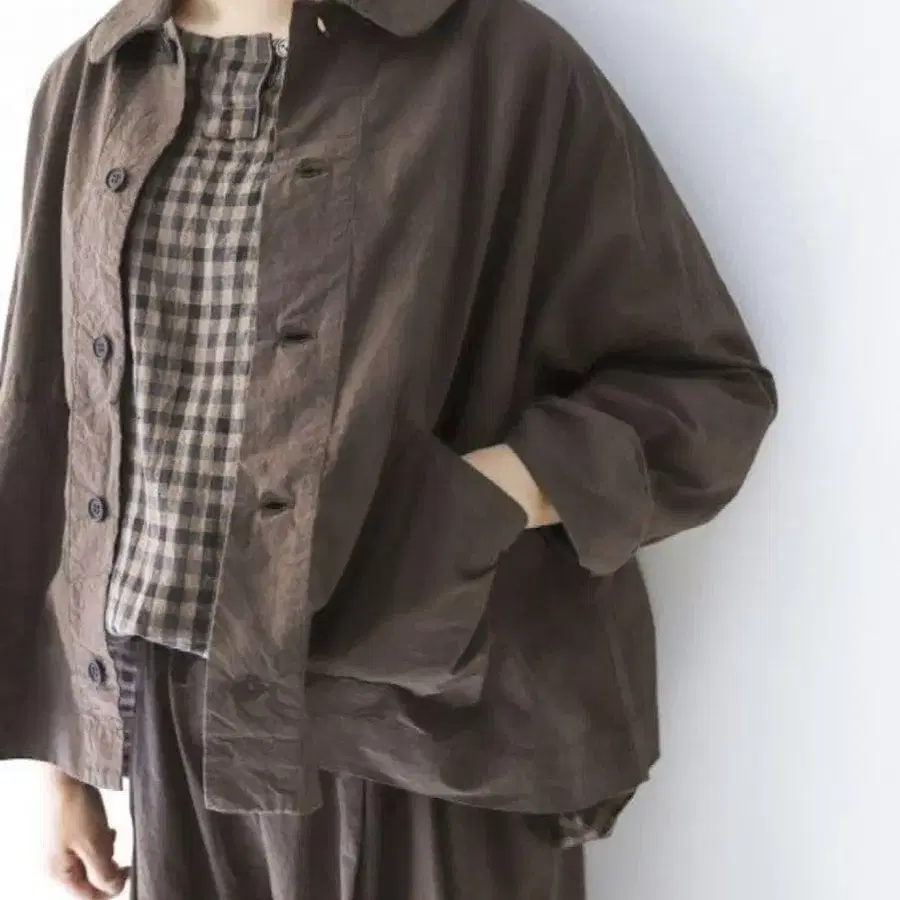 nest Robe 코튼 라미 카라 부착 숏 자켓