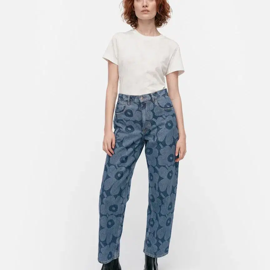 마리메꼬 Unikko 패턴 스트레이트 데님