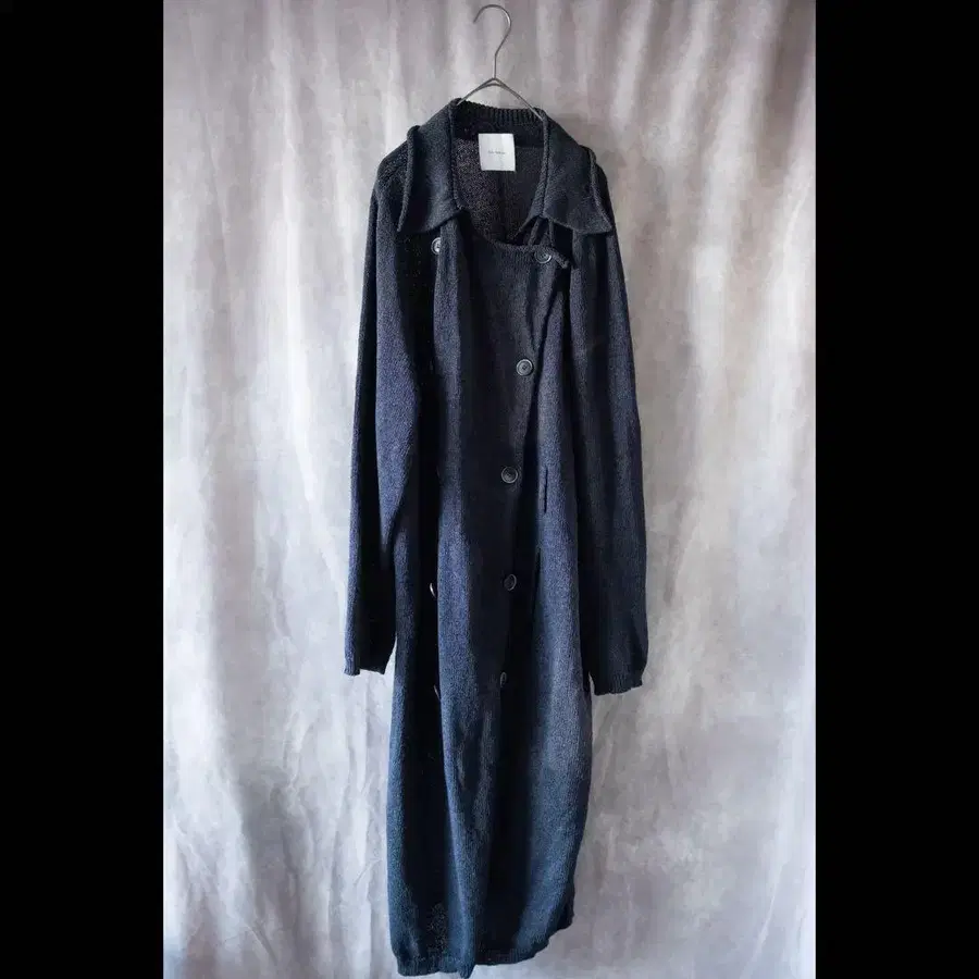 Kota Gushiken의 와시 니트 트렌치 코트입니다. 양 사이드에 버튼 및 버튼홀이 있어 어느 쪽을 앞으로 해도 착용할 수 있습니다.