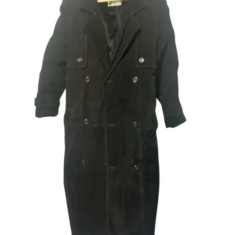 블랙 스웨이드 소재의 더블 브레스트 롱 코트. 전체 길이 1460mm - 색상: 블랙 - 소재: 스웨이드 - 디자인: 더블 브레스트 - 특징: 롱 기장 - 안감: 새틴 마감 방문해 주셔서 감사합니다. 장신 남성용이라도 롱 느낌이 상당히 나는 스웨이드 코트입니다. 본격적인 겨울이 오기 전에 어떠신가요?