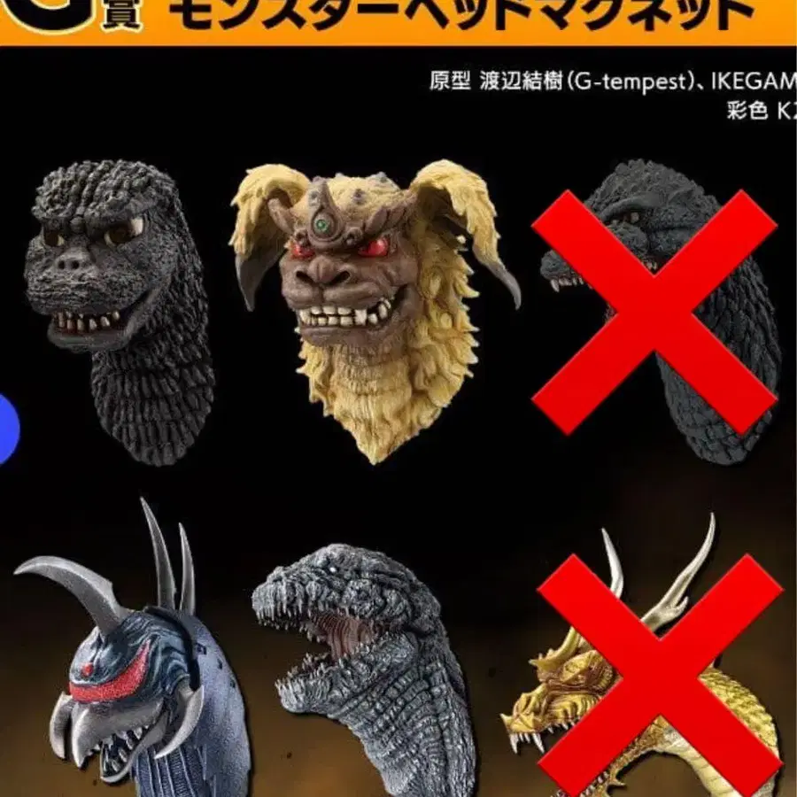 제일복권 고질라 대괴수 열전 G G상 몬스터 헤드 마그넷 4개 세트