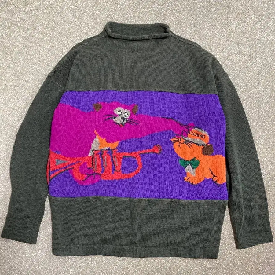 아이스버그 애니멀 무늬 보틀넥 빈티지 이탈리아제 니트