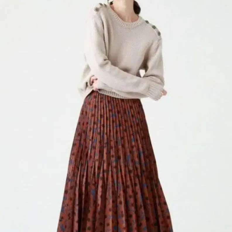 EPOCA 에포카 롱 스커트 플리츠 스커트 베리스 프린트 브라운