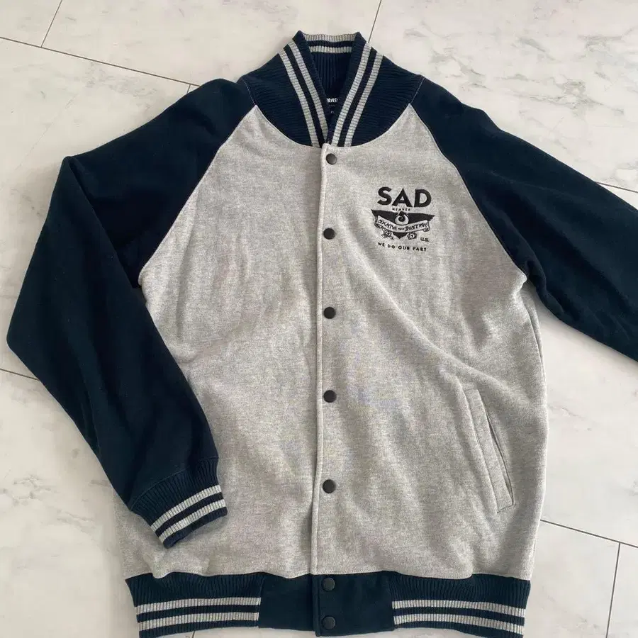 • [ 초인기 ] 엑스라지 소매 절개 파일 로고 울 바시티 자켓 M 네이비