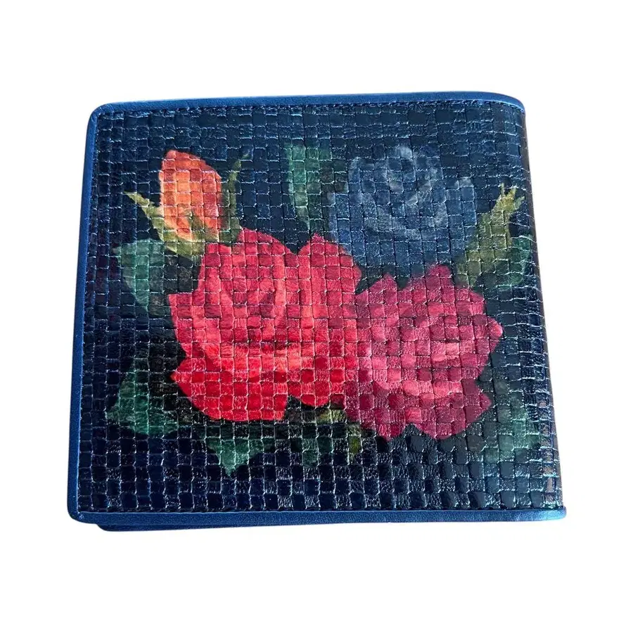 미사용 레트로 요시나가 프린스 장미 네이비 접이식 지갑 가죽
