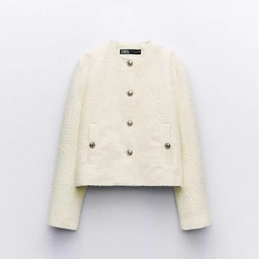 ZARA 아이보리 노카라 자켓/숏 텍스처 자켓