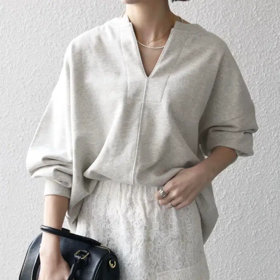snidel 새상품 오프숄더 그레이 벌룬 슬리브 맨투맨