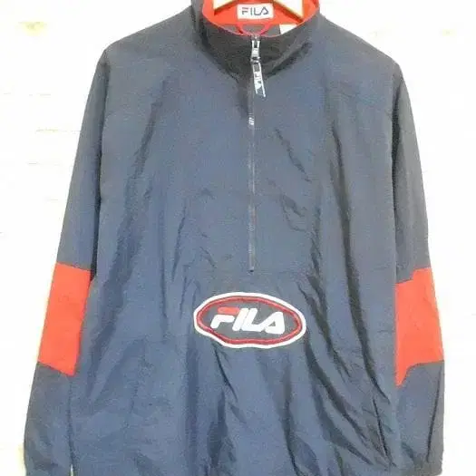 • FILA 빈티지 아노락 풀오버 충전솜 나일론 자수 로고 빨검
