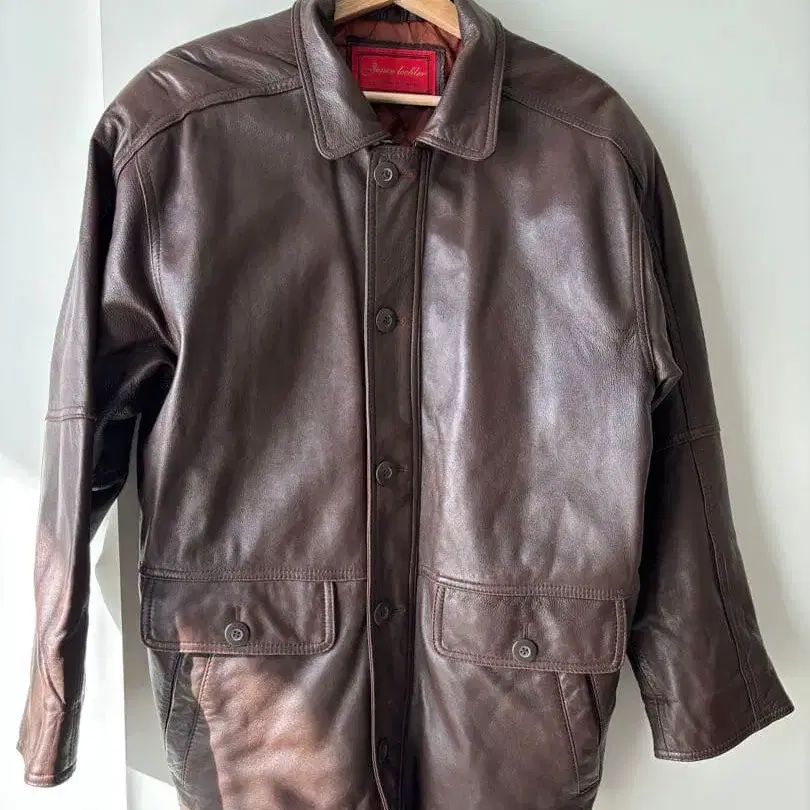 빈티지 브라운 가죽 코트