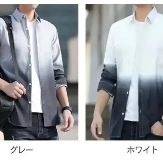 2세트 그라데이션 긴팔 셔츠 그레이/화이트