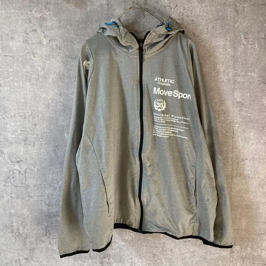 데상트 집업 자켓 저지 그레이 L 사이즈 후드 부착