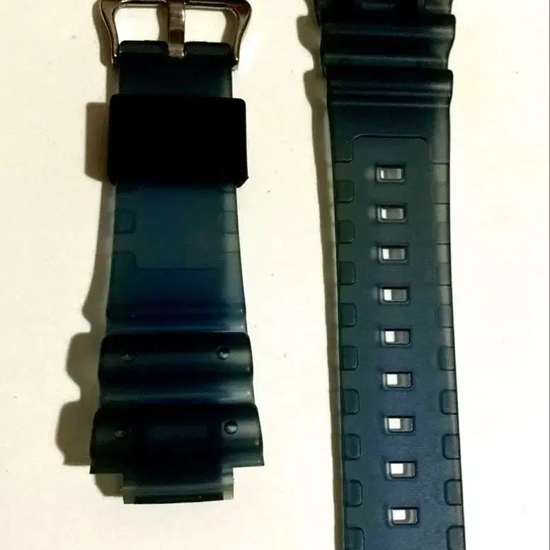 GSHOCK 고무 벨트 DW 5600, DW6900 등 1997년 구매 반투명 블루 그레이 당시 해외에서 구매했지만 사용하지 않고 자택 보관 중입니다. 비닐에 들어 있었기 때문에 가수분해는 많이 되지 않았다고 생각합니다.